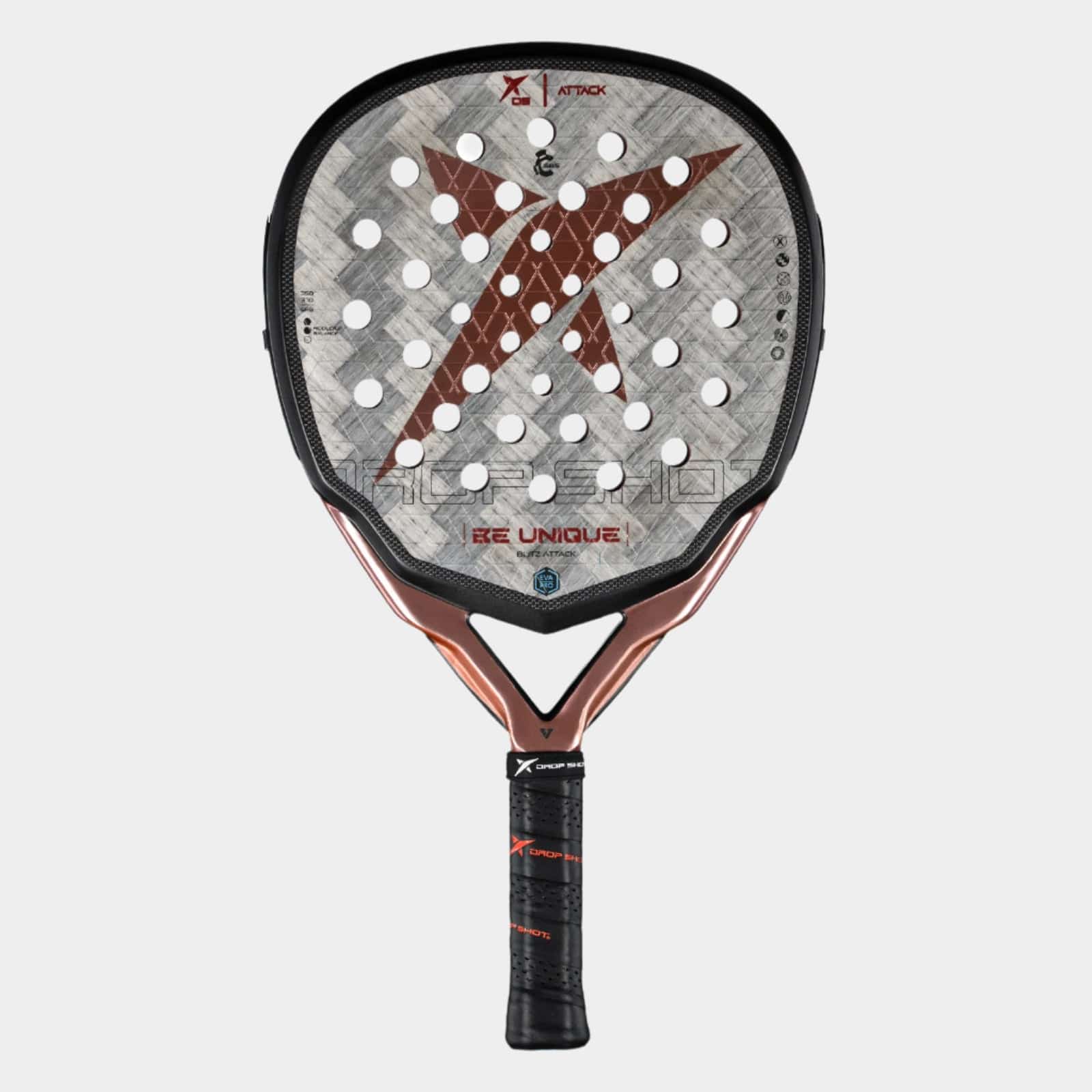 راکت Drop Shot Blitz Attack 2025 با فرم اشکی (Teardrop)، وزن ایده‌آل بین ۳۶۰ تا ۳۷۰ گرم و بالانسی که کمی به سمت سر راکت متمایل است (Medium-High)، طراحی شده تا در هر ضربه حداکثر قدرت را تضمین کند، بدون آنکه ذره‌ای از کنترل را فدا کنید.